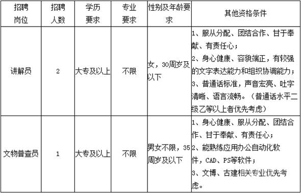 因工作需要,桐廬縣文管辦(博物館)現(xiàn)面向社會公開招聘編外工作人員3名。具體招聘事宜如下: