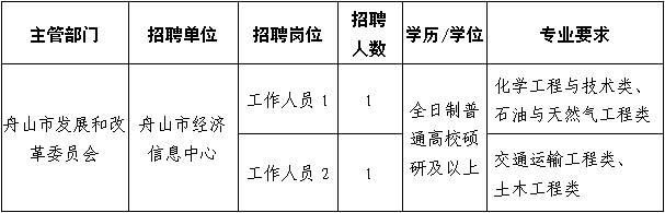 為適應(yīng)浙江舟山群島新區(qū)建設(shè)需要,進(jìn)一步強(qiáng)化人才隊伍建設(shè),根據(jù)《浙江省事業(yè)單位公開招聘人員暫行辦法》要求,經(jīng)舟山市人力資源和社會保障局同意,舟山市發(fā)展和改革委員會下屬事業(yè)單位—舟山市經(jīng)濟(jì)信息中心決定面向社會公開招聘2名高層次人才。現(xiàn)將有關(guān)事項公告如下: