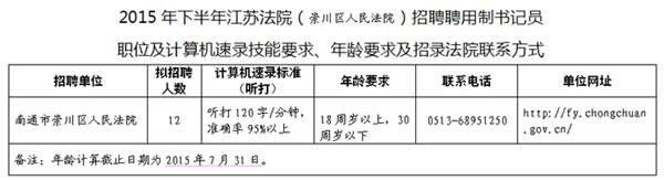 2015年下半年江蘇法院(崇川區(qū)人民法院)招聘聘用制書記員公告