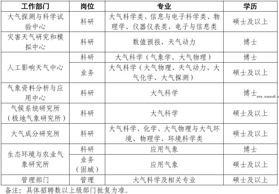 在中國(guó)氣象局、中國(guó)氣象科學(xué)研究院、中國(guó)氣象局人才交流中心及相關(guān)招聘網(wǎng)站發(fā)布招聘公告。