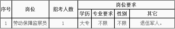 為進(jìn)一步規(guī)范我縣機(jī)關(guān)事業(yè)單位編外人員的管理,根據(jù)我縣《關(guān)于進(jìn)一步加強(qiáng)機(jī)構(gòu)編制和人事管理工作的意見》(景委辦〔2010〕21號)文件精神,經(jīng)研究決定,景寧縣人力資源和社會保障局面向社會公開招聘編外工作人員1名,現(xiàn)將有關(guān)事項(xiàng)公告如下: