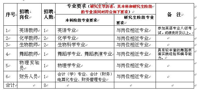 英語教師1人、化學(xué)教師2人、生物教師2人、舞蹈教師1人、物理實(shí)驗(yàn)員1人、財(cái)務(wù)人員1人。