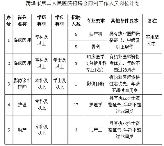 為優(yōu)化菏澤市第二人民醫(yī)院衛(wèi)生技術(shù)隊(duì)伍結(jié)構(gòu),進(jìn)一步提高醫(yī)院醫(yī)療技術(shù)水平和服務(wù)質(zhì)量,滿足醫(yī)院發(fā)展需要和病患需求,經(jīng)市衛(wèi)生局同意,擬面向社會(huì)公開招聘編制外合同制工作人員,現(xiàn)將有關(guān)事項(xiàng)公告如下: