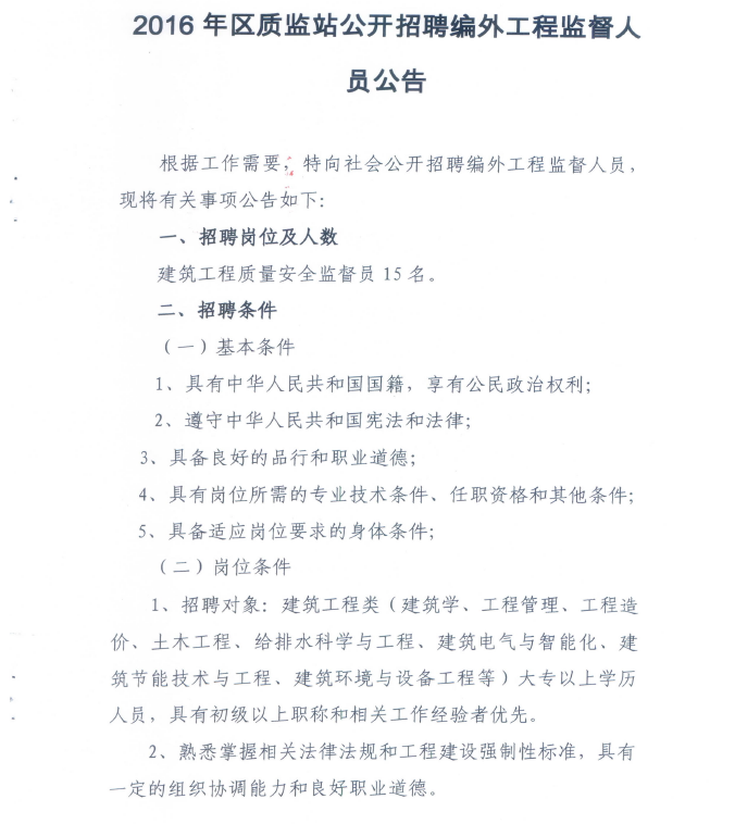 2016年廣州市南沙區(qū)質(zhì)監(jiān)站招聘工程監(jiān)督員公告