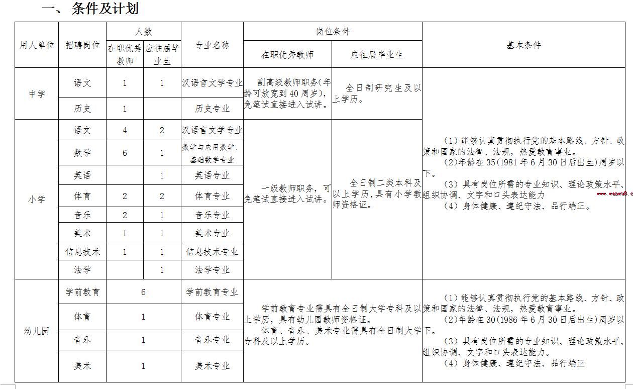 2、報名及資格審查:應聘人員攜帶本人身份證、畢業(yè)證、《教育部學歷證書電子注冊備案表》(備案表的制表日期須在2016年6月25日之后)、教師資格證、四張一寸近期免冠照片;取得符合職位條件的專業(yè)技術職務證書原件和復印件。