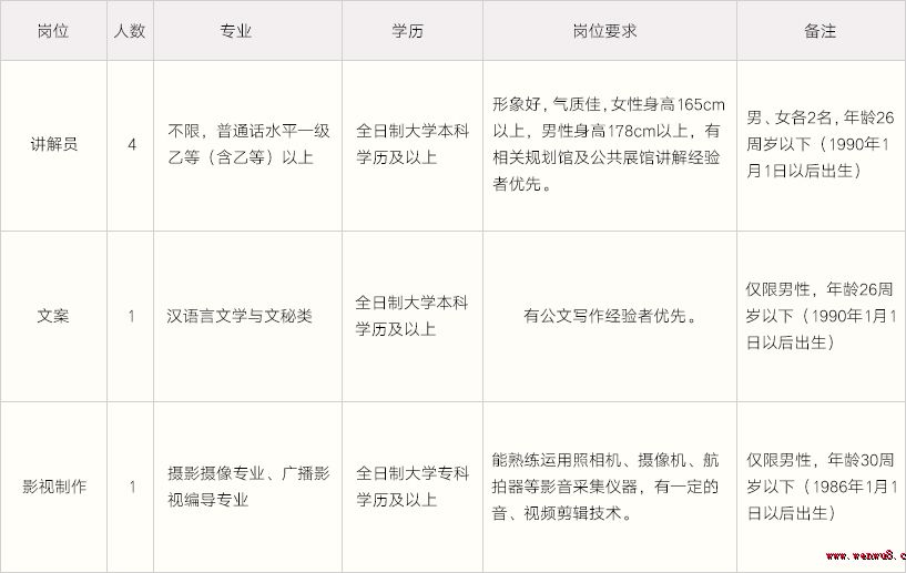 講解員采取口試的方式,文案、影視制作采取筆試和面試的方式,影視制作面試須由應聘者攜帶自主攝制的視頻和圖片作品。入圍者參加崗前培訓,進入試用期,試用期三個月,試用期滿經(jīng)考核合格后正式聘用。