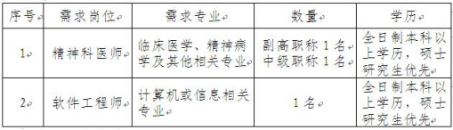 招聘信息(精神科醫(yī)師、軟件工程師)