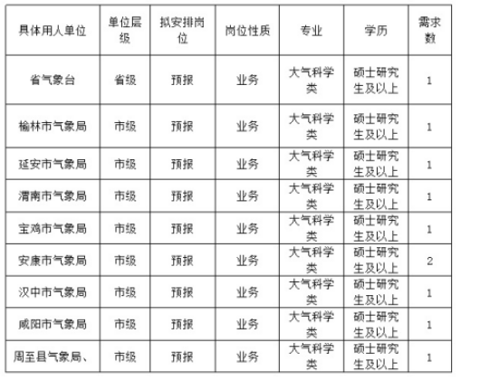 按照中國氣象局批準(zhǔn)的2017年事業(yè)單位畢業(yè)生接收計劃,現(xiàn)就陜西省氣象部門2017年事業(yè)單位招聘大氣科學(xué)專業(yè)碩士研究生有關(guān)事項公告如下: