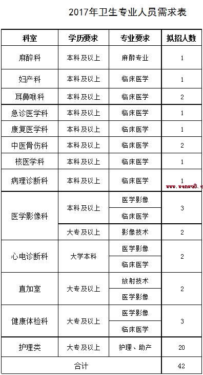 1、報名條件:見附件《2017年衛(wèi)生專業(yè)人員需求表》。