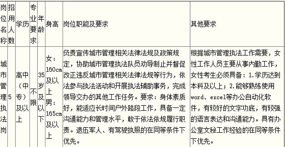 (一)招聘人數(shù):面向社會(huì)公開招聘城市管理執(zhí)法協(xié)管員5名。