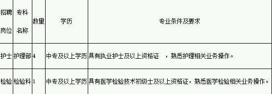 為適應(yīng)衛(wèi)生院發(fā)展需要,經(jīng)討論,我院面向社會(huì)公開招聘工作人員5名。現(xiàn)公告如下: