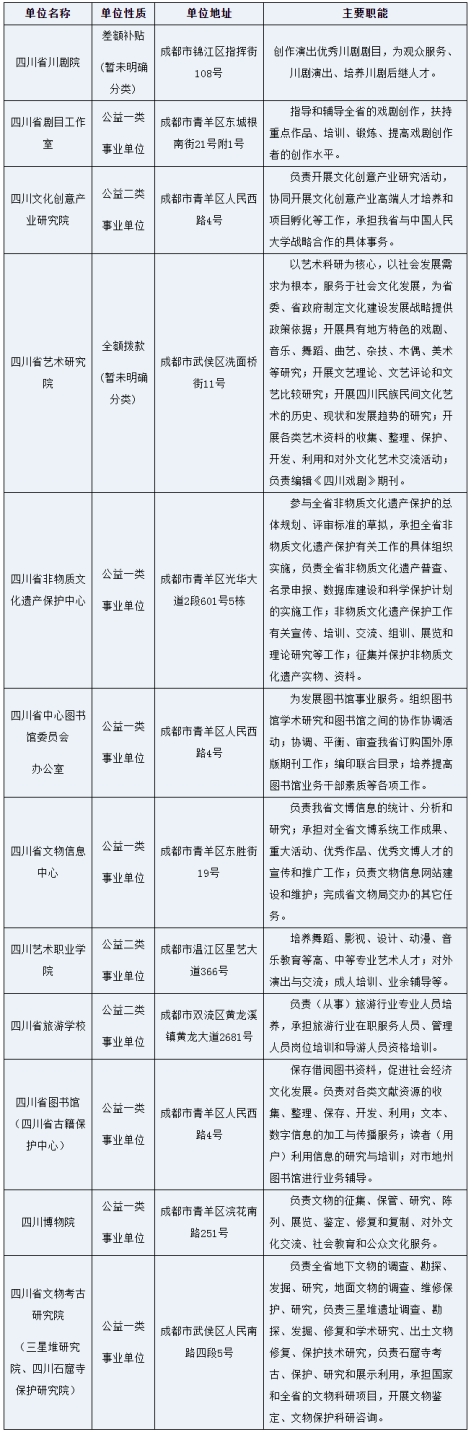 根據(jù)《事業(yè)單位人事管理條例》《事業(yè)單位公開招聘人員暫行規(guī)定》和《四川省省屬事業(yè)單位公開招聘工作人員實施細則(試行)》等有關(guān)規(guī)定,四川省文化和旅游廳擬面向社會公開招聘部分工作人員補充到四川省川劇院等12個直屬事業(yè)單位工作。現(xiàn)將公開招聘有關(guān)事項公告如下(本公告由四川省文化和旅游廳同時在四川省人力資源和社會保障廳官網(wǎng)[http://rst.sc.gov.cn,下同]“人事考試”專欄和四川省文化和旅游廳官網(wǎng)[http://wlt.sc.gov.cn/],下同]上發(fā)布)。