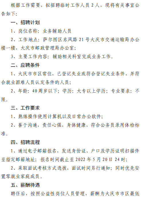 2022黑龍江大慶市交通運輸局招聘公告【2人】