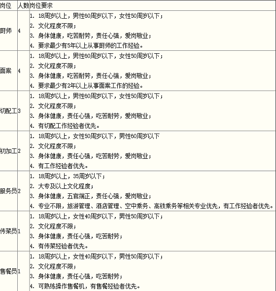 附件1:第一后勤服務中心2022年第二次公開招聘17名編制外工作人員崗位表