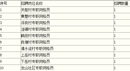 一、崗位及人數(shù)專職網(wǎng)格員10名。