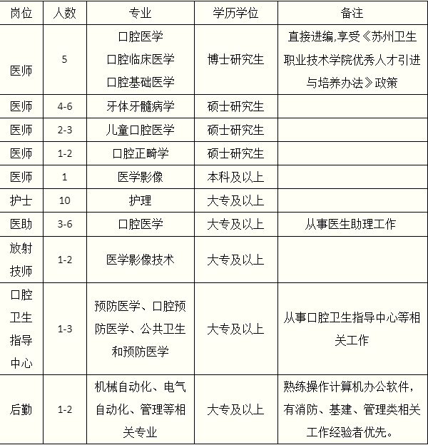 《蘇州市華夏口腔醫(yī)院崗位需求計劃》