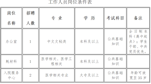 (三)符合招聘《崗位條件表》(如下)中各崗位所規(guī)定的具體資格條件;