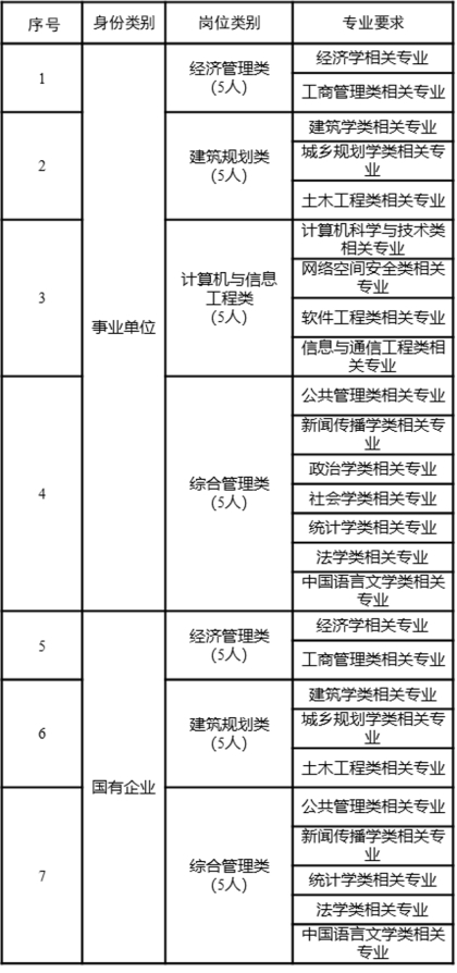 本次共面向境內外部分優(yōu)秀院校的碩士、博士研究生引進高層次專業(yè)人才35名左右(其中事業(yè)單位20名左右,區(qū)屬國企15名左右)。