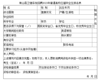 常山縣衛(wèi)健系統(tǒng)招聘2023年普通高校應(yīng)屆畢業(yè)生報名表