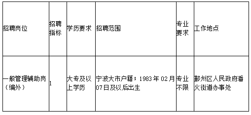 2.報(bào)名地點(diǎn)和聯(lián)系方式:鄞州區(qū)誠(chéng)信路668號(hào)潘火街道辦事處509辦公室,咨詢(xún)電話(huà):0574-83088689,聯(lián)系人:王老師。