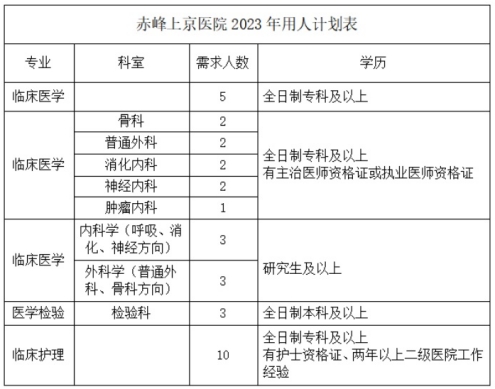 赤峰上京醫(yī)院2023年面向社會公開招聘專業(yè)技術(shù)人員33名。具體招聘計劃見下表: