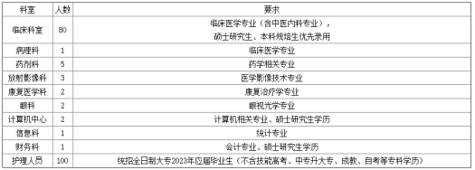 注:1.以上崗位除護理專業(yè)及要求碩士研究生學歷的崗位之外,其它崗位招聘學歷要求為全日制統(tǒng)招公辦院校二類本科及以上,不包含“中起本”、“專套本”、“專升本”學歷等。