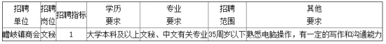 因工作需要,寧波市鄞州區(qū)瞻岐鎮(zhèn)政府?dāng)M面向社會招聘商會文秘1名。具體要求如下: