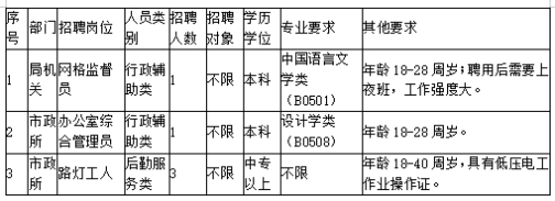 根據(jù)工作需要,清遠(yuǎn)市清城區(qū)城市管理和綜合執(zhí)法局面向社會(huì)公開(kāi)招聘5名工作人員,F(xiàn)將有關(guān)事項(xiàng)公告如下: