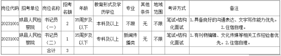 1.招考職位詳見《珙縣人民檢察院2023年公開招考聘用制書記員崗位表》。