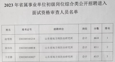 2023年省屬事業(yè)單位初級崗位綜合類公開招聘進入面試資格審查人員名單