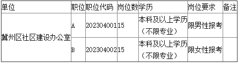 冀州區(qū)公開招聘社區(qū)工作者職位表