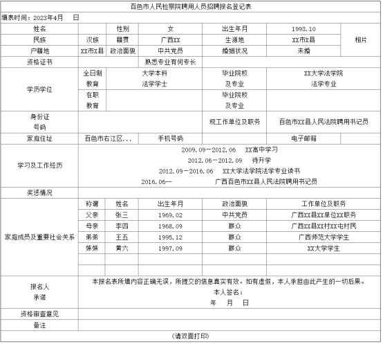附件:百色市人民檢察院聘用人員招聘報(bào)名登記表