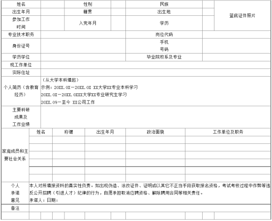 公開引進(jìn)高層次專業(yè)技術(shù)人才報(bào)名表