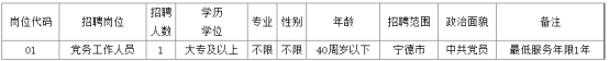 寧德市蕉城區(qū)工信局現(xiàn)因工作需要,擬面向社會(huì)招聘工作人員1名。現(xiàn)將有關(guān)事項(xiàng)公告如下:
