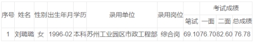 根據(jù)《蘇州工業(yè)園區(qū)部分單位公開招聘工作人員公告》,經(jīng)過筆試、面試、體檢、考察(政審)等程序,現(xiàn)將蘇州工業(yè)園區(qū)市政工程部擬錄用人員名單公示如下。