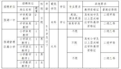 西湖管理區(qū)教育系統(tǒng)公開招聘工作人員崗位條件及數(shù)量表