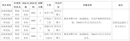 附件:河南省地質(zhì)研究院公開招聘崗位信息表