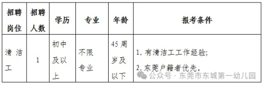 東莞市東城第一幼兒園,是隸屬東城街道辦事處的一所公辦園,現(xiàn)擬面向社會(huì)公開招聘1名清潔工。