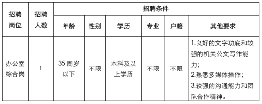 本次招聘崗位1個,共招辦公室綜合崗1名。