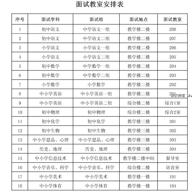 2012年新疆兵團特崗教師招聘面試考場安排