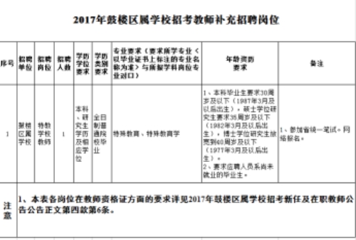 附:《2017年鼓樓區(qū)屬學(xué)校招考教師補(bǔ)充招聘崗位》