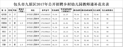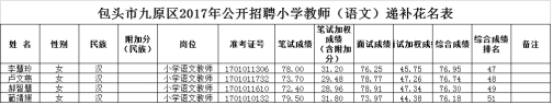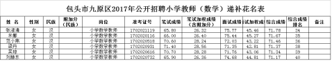 包頭市九原區(qū)2017年公開(kāi)招聘小學(xué)、幼兒園教師遞補(bǔ)公告