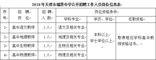 (三)各崗位具體報考條件見《2017年天津市瑞景中學(xué)公開招聘工作人員崗位人員信息表》。