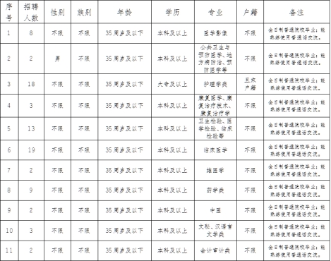 35周歲及以下,具有執(zhí)業(yè)醫(yī)師證的40歲以下,中級(jí)以上職稱年齡不限。 | ||