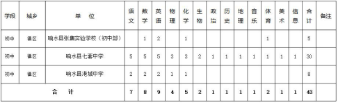 本次計(jì)劃招聘全額撥款事業(yè)編制教師43名,具體招聘崗位詳見《響水縣部分鎮(zhèn)區(qū)中學(xué)2019年公開招聘教師崗位表》(以下簡(jiǎn)稱《崗位表》)。