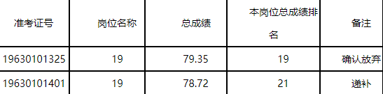 根據(jù)《關(guān)于蘆臺經(jīng)濟開發(fā)區(qū)和漢沽管理區(qū)2019年事業(yè)單位公開招聘工作人員的公告》規(guī)定,于12月10日組織考生進行了體檢。12月12日,崗位19一名考生提出自愿放棄,在本崗位內(nèi)按總成績由高到低依次遞補體檢1人,F(xiàn)公告如下: