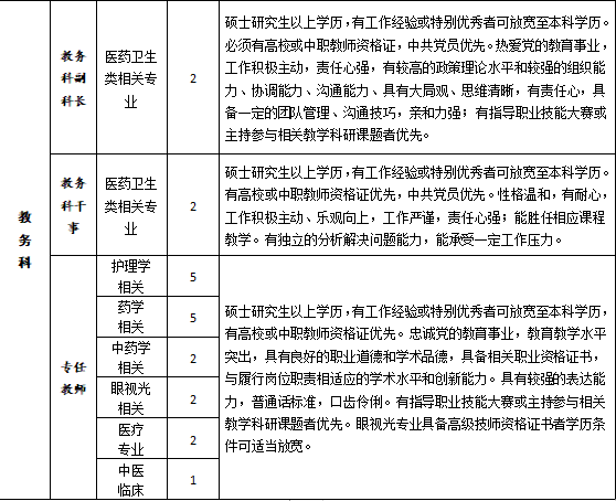 現(xiàn)根據(jù)學(xué)校整體發(fā)展需要,擬公開(kāi)招聘一批熱愛(ài)黨的教育事業(yè),具有團(tuán)隊(duì)精神、創(chuàng)新意識(shí)、德才兼?zhèn)涞膬?yōu)秀教師和優(yōu)秀醫(yī)藥衛(wèi)生人才,現(xiàn)將具體內(nèi)容公告如下: