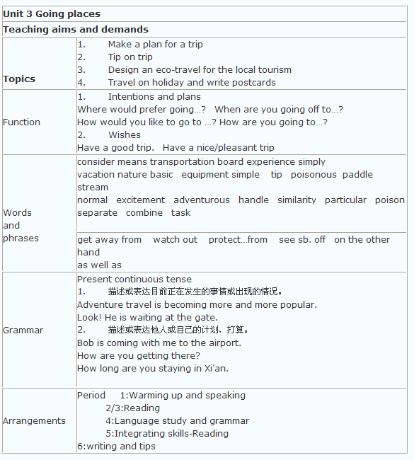 本單元的中心話題是“旅游”,可以說這是一個世界性的時(shí)尚話題,隨著經(jīng)濟(jì)發(fā)展、社會進(jìn)步、人們生活水平的提高,旅游作為現(xiàn)代人的一種生活方式,越來越被更多的人們所接受與喜愛。文中涵蓋了有關(guān)這一話題的許多內(nèi)容,如:“人們在旅游中的交通方式”“旅游點(diǎn)的選擇”,還有新興的旅游方式----“探險(xiǎn)旅游”、“生態(tài)旅游”等等。而所有的語言知識和語言技能幾乎都是圍饒這一中心話題而設(shè)計(jì)的。而在上這一單元時(shí),正趕上“十一”長假到哪去的話題,學(xué)生應(yīng)該比較感興趣。