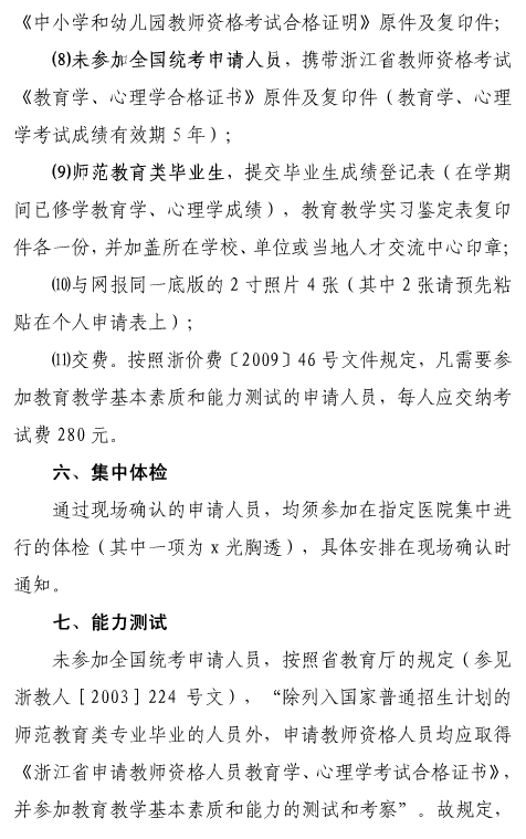 浙江省杭州市余杭區(qū)2011年下半年教師資格證認定專業(yè)知識考試、教育教學基本素質(zhì)和能力測試的通知
