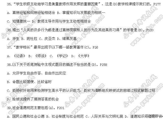 34.關(guān)于我國(guó)古代教育的教育目的,下列描述中不恰當(dāng)?shù)氖?D)。P86